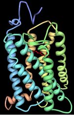 - ↑ Palczewski K et al. Crystal Structure of Rhodopsin: A G Protein-Coupled Receptor (англ.) // Science : journal. — 2000. — Vol. 289, no. 5480. — P. 739—745. — doi:10.1126/science.289.5480.739. — PMID 10926528.