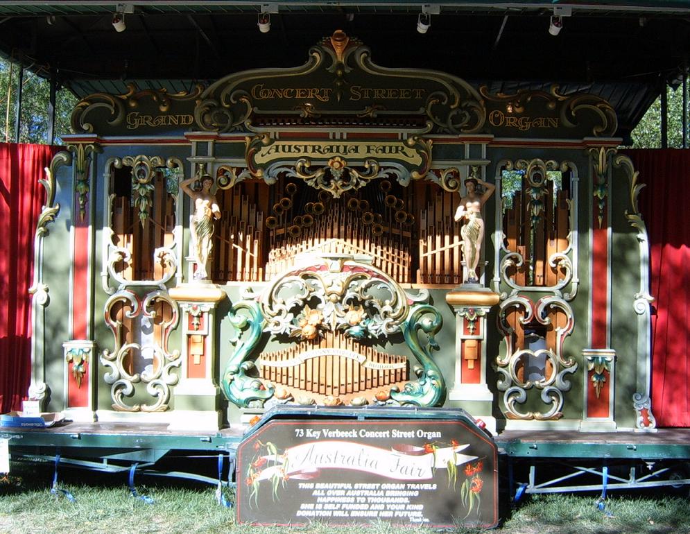 | Описание | "Australia Fair Grand Concert Street Organ", a Verbeeck style 73 note street organ.