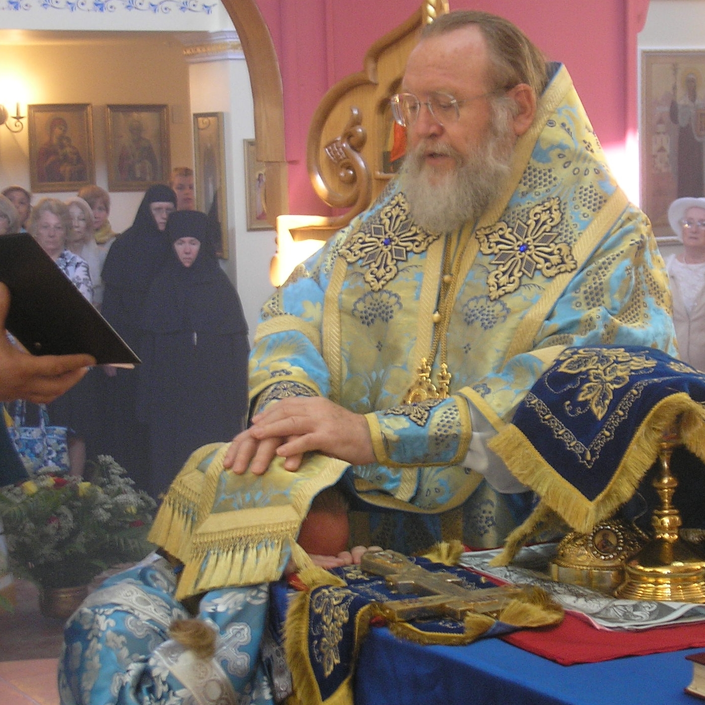 | Описание | Ordination of an orthodox priest. The deacon being ordained is kneeling at the south west corner of the holy table and the bishop places his omophorion and right hand on the deacon's head and his left hand over his right hand so as to make a cross, while reciting the prayers of Cheirotonia (laying on of hands). |