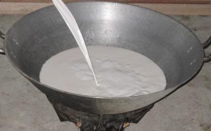 | Описание | Coconut milk (kakang gata) being poured to the "talyasi" ready for cooking into coconut oil. |