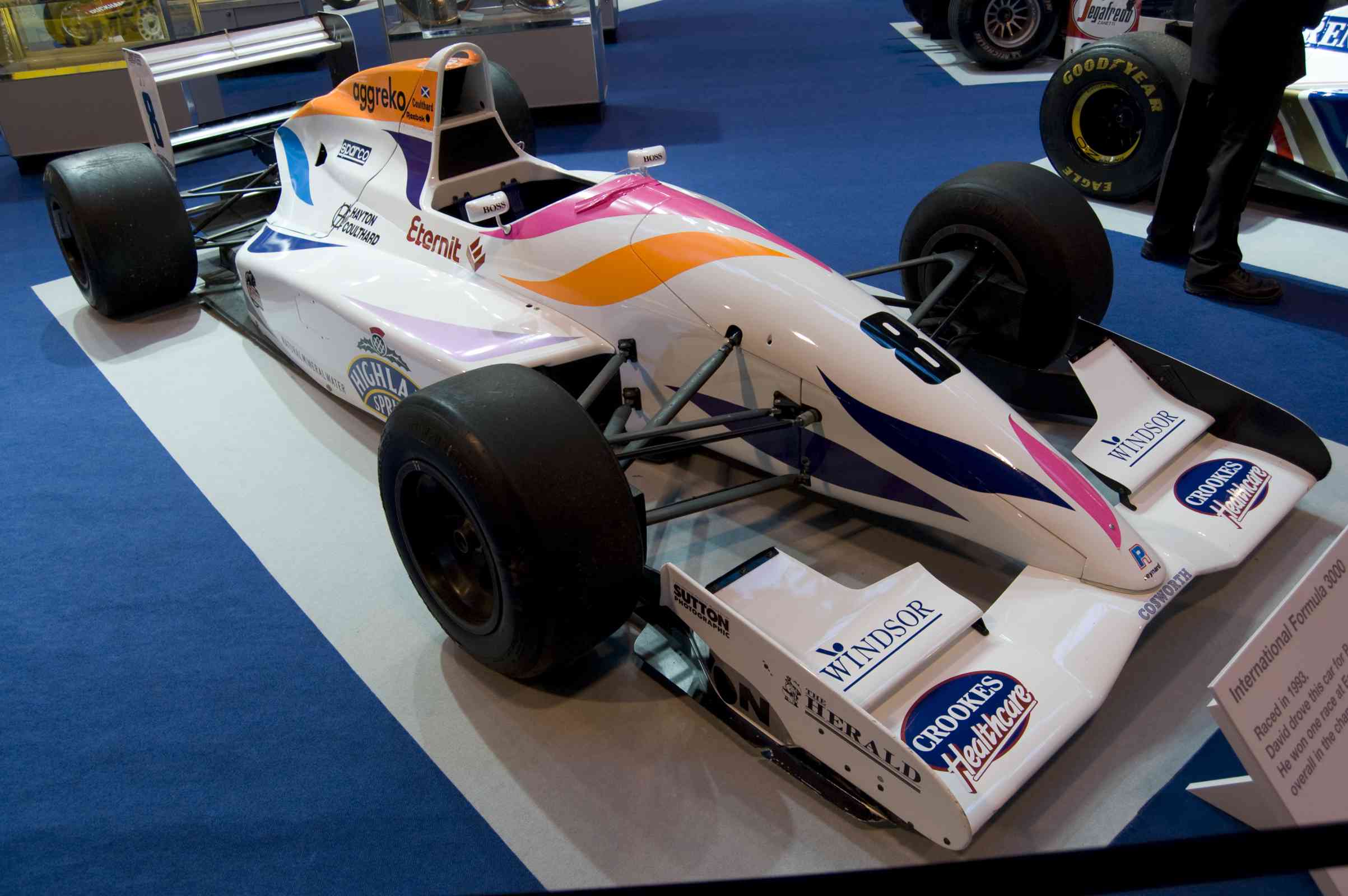 | Описание | David Coulthard's Pacific Racing Formula 3000 car (1993 Reynard 93D-Ford Cosworth) Exhibited at the Autosport International show. Coulthard placed third for Pacific Racing in the 1993 FIA International Formula 3000 Championship. |