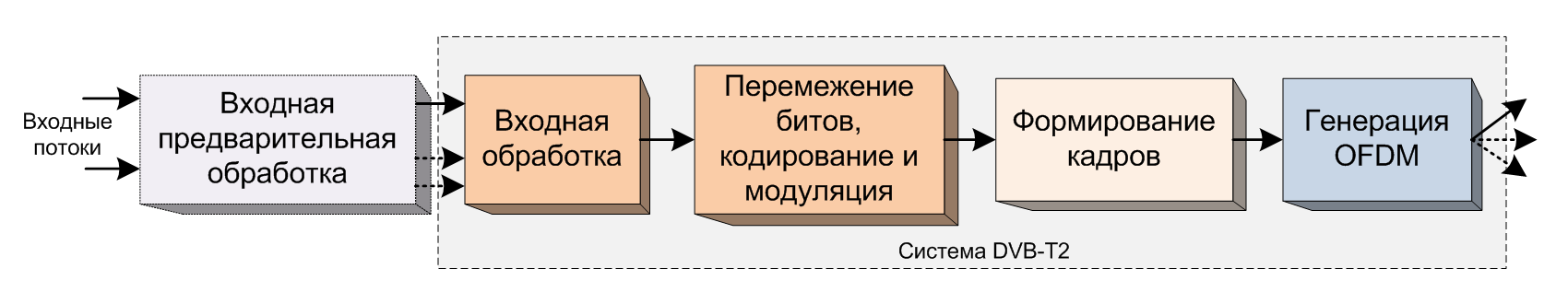 | Описание | обобщенная схема обработки передаваемых сигналов в системе DVB-T2 |