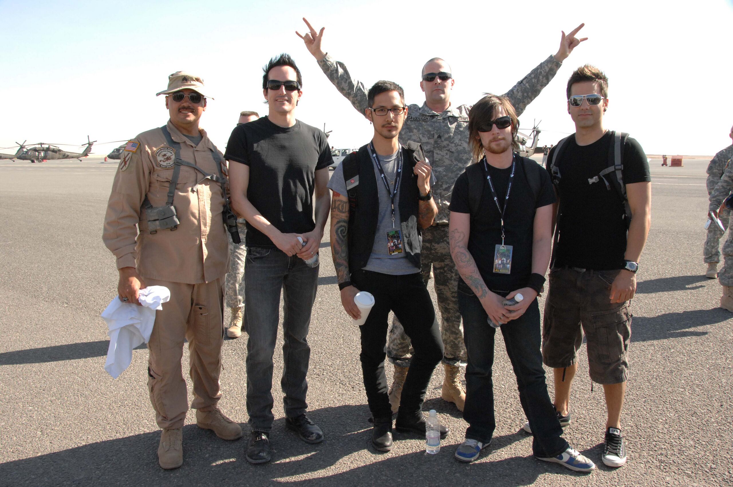 | Описание | Former bassist of the band, Filter, Army Sgt. Frank Cavanagh rocks out with arms held high as he is reunited with the band before his deployment to Iraq. Filter performed before a crowd of about 5,000 servicemembers at the Operation: MySpace concert on Mar. 10, 2008 at Camp Buehring, Kuwait. |
