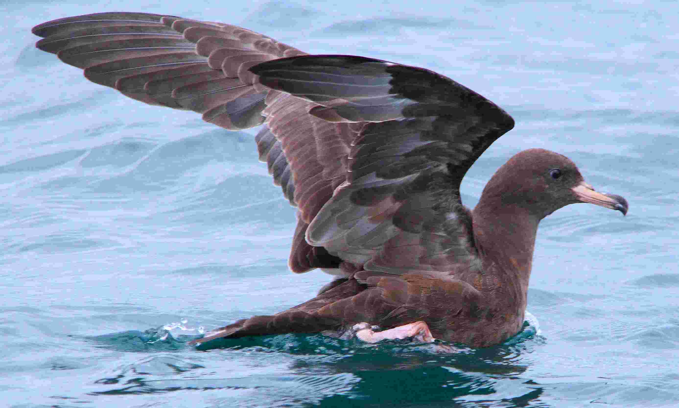 | Описание | The Flesh-footed Shearwater (Puffinus carneipes) is a medium-sized shearwater. Its plumage is black. It has pale pinkish feet, and a pale bill with a distinct black tip. |