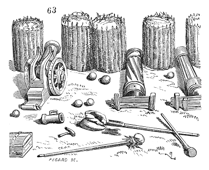 | Описание | ... peu à peu on dut renoncer aux attaques brusquées et n'approcher des places ainsi munies qu'à couvert dans des boyaux de tranchée contournés dont les retours anguleux ou arrondis étaient défilés par des gabions remplis de terre et posés debout. Ces gros gabions servaient aussi à masquer les pièces en batterie |