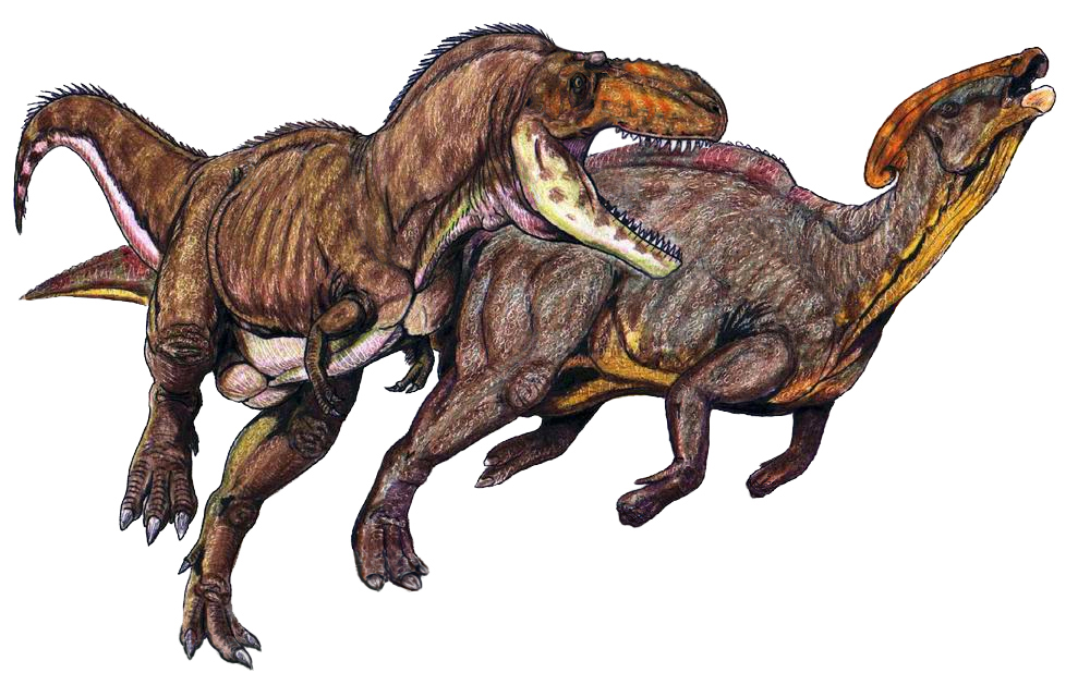| Описание | New Mexican "Gorgosaurus sp." (now classified as Teratophoneus) restored attacking a Parasaurolophus cyrtocristatus. |