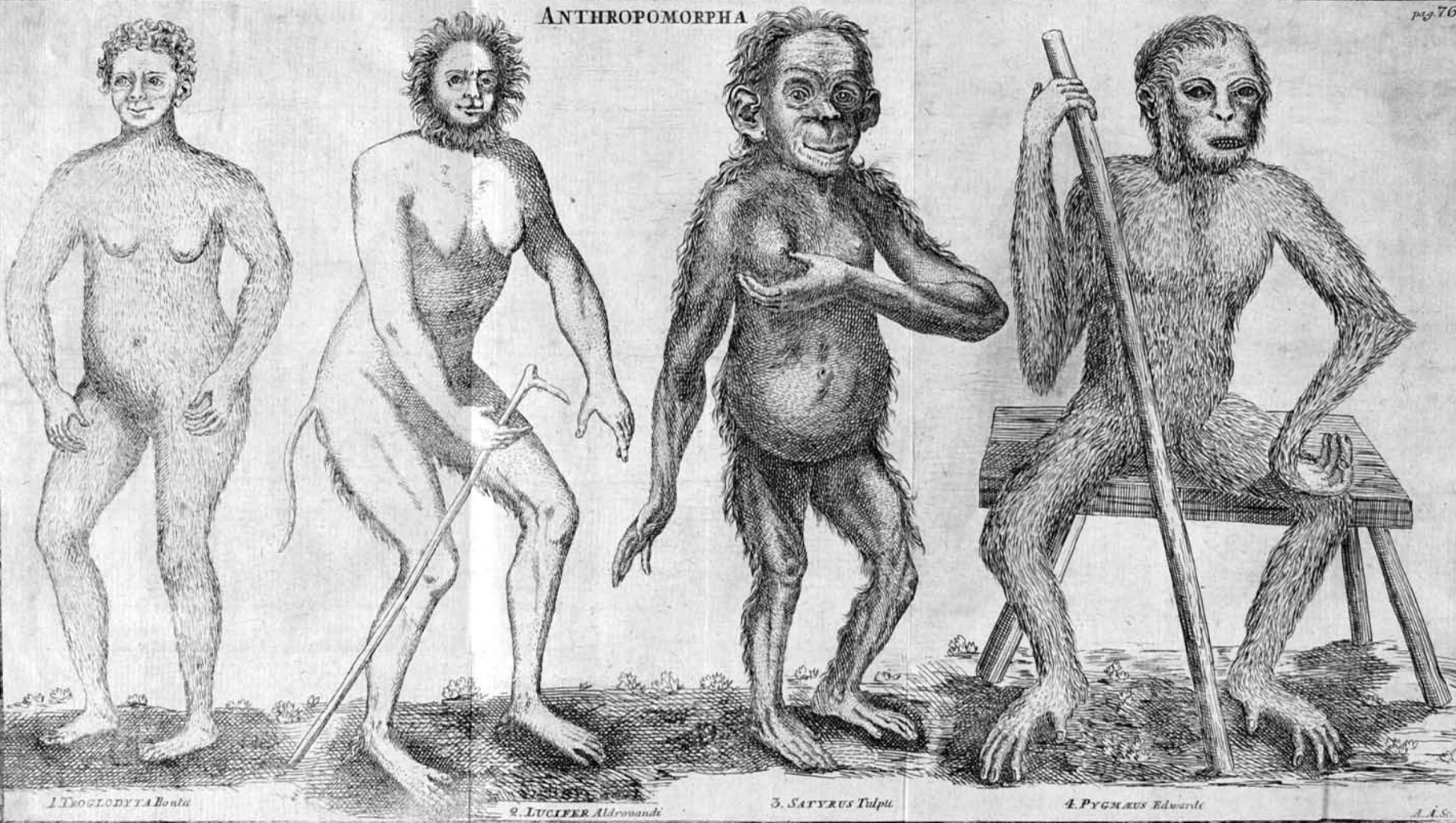 | Описание | 1. Troglodyta Bontii, 2. Lucifer Aldrovandi, 3. Satyrus Tulpii, 4. Pygmaeus Edwardi |
