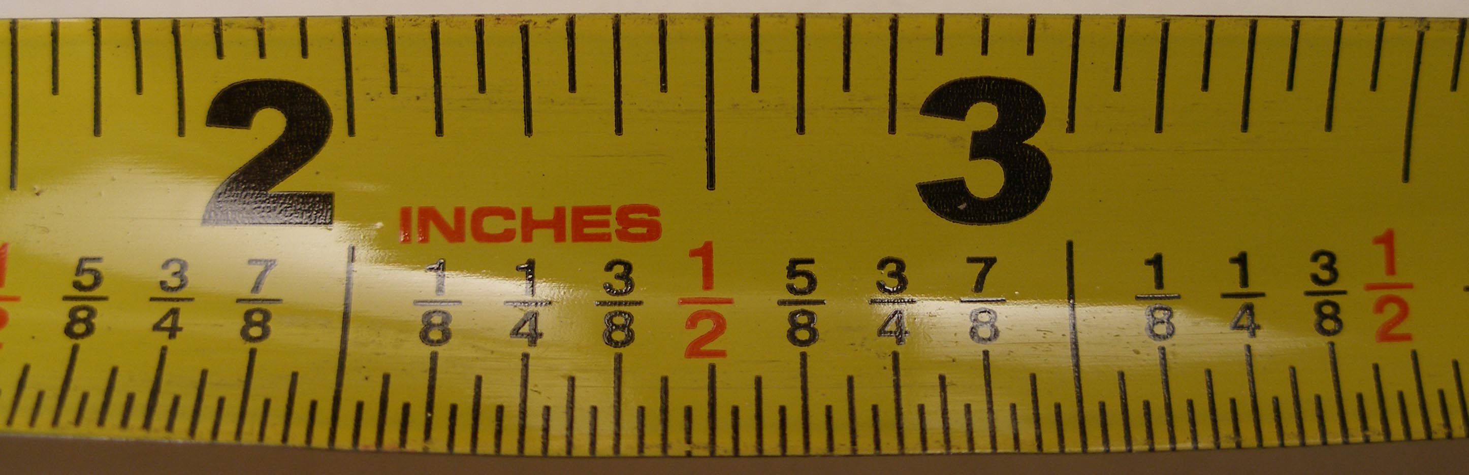 | Описание | Picture of a common measuring tape showing inch measurements. Its smallest divisions are 1/32nd of an inch. |