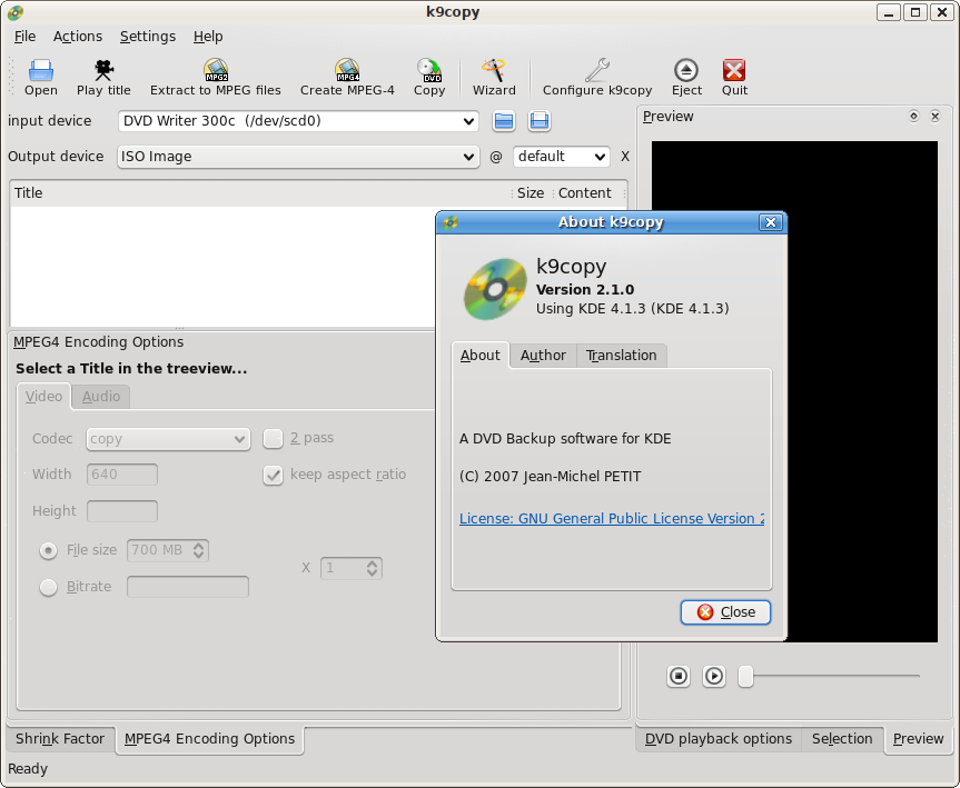 | Описание | Screenshot of K9Copy 2.1.0 (Using KDE 4.1.3) on GNU/Linux (Ubuntu 8.10) with Gnome Desktop. |