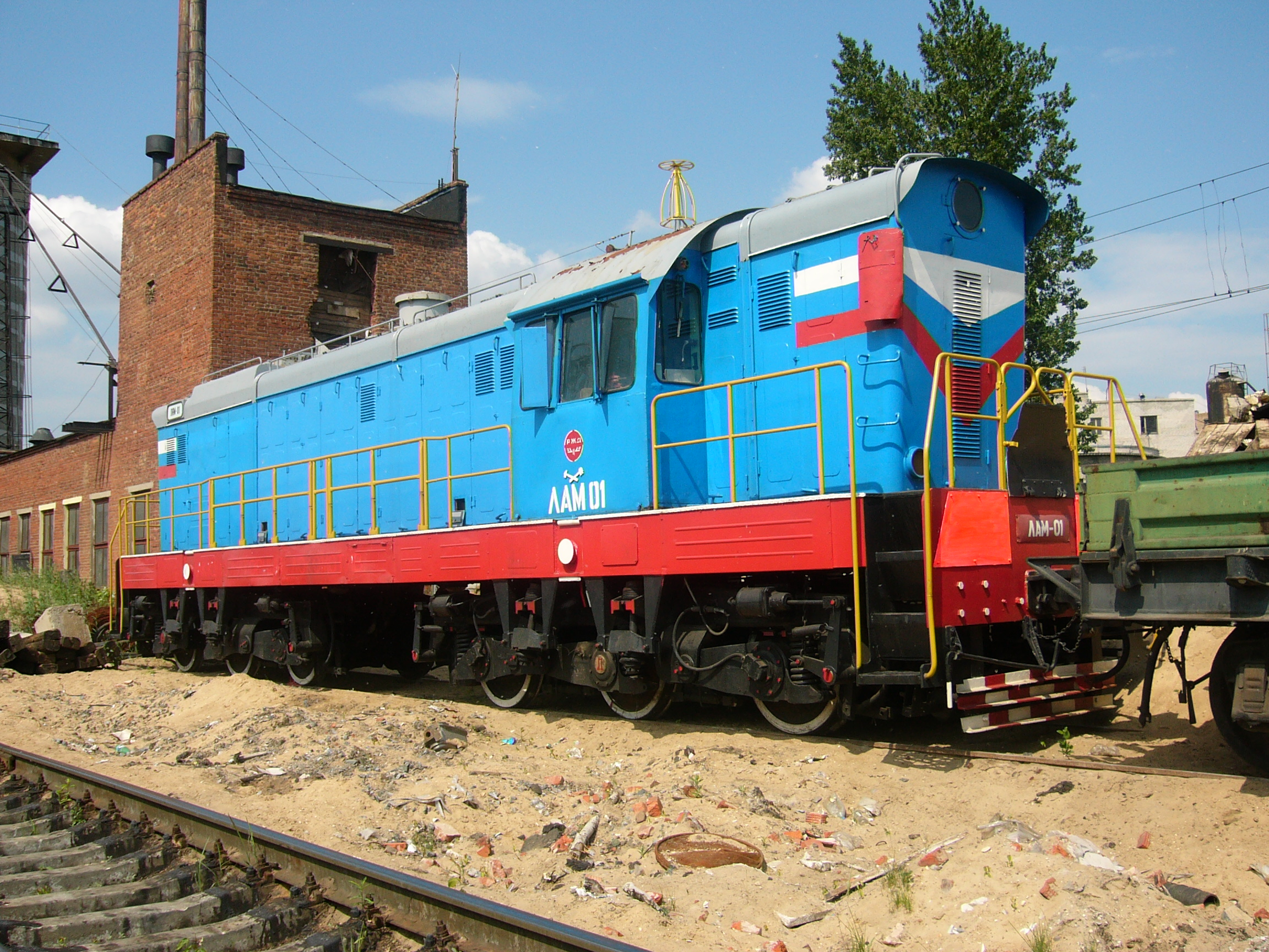 | Описание | Маневровый аккумуляторный электровоз ЛАМ-01 в депо Москва-3. Переделан из тепловоза ЧМЭ3. |