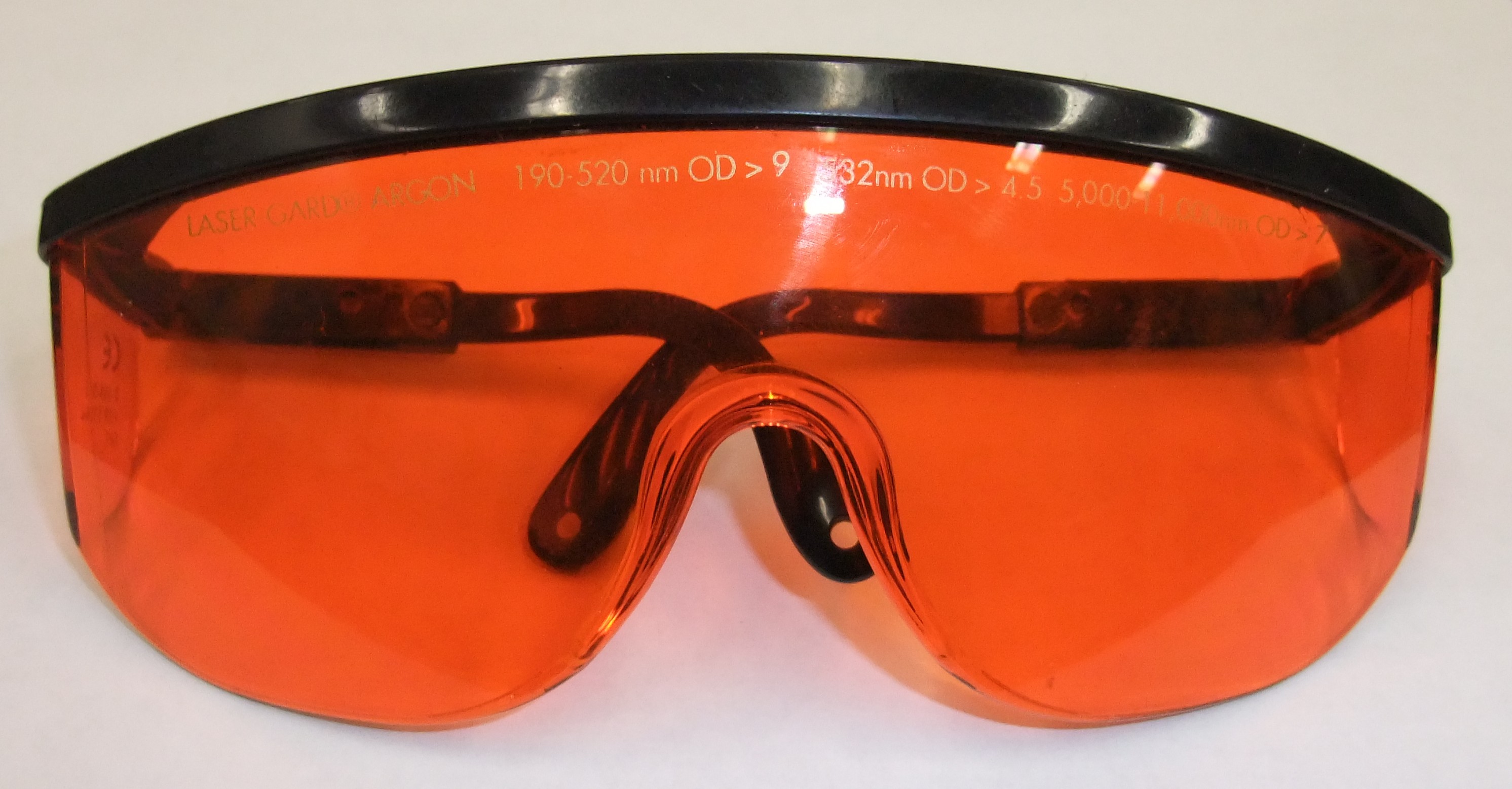 | Описание | A photograph of Laser-Gard Argon glasses with the following optical density~~ 190-520nm OD>9, 532nm OD>4.5, and 5,000-11,000nm OD>7. |