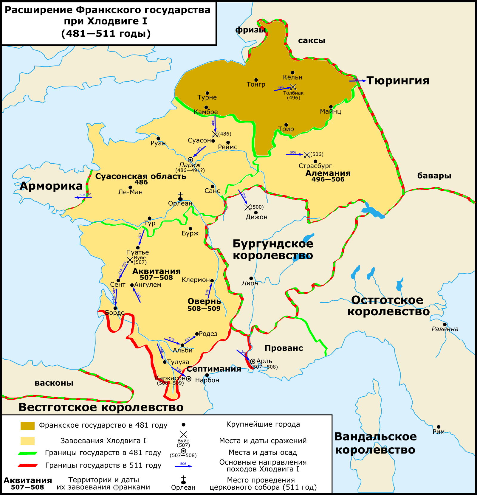 | Описание | Расширение Франкского государства при Хлодвиге I (481—511) |