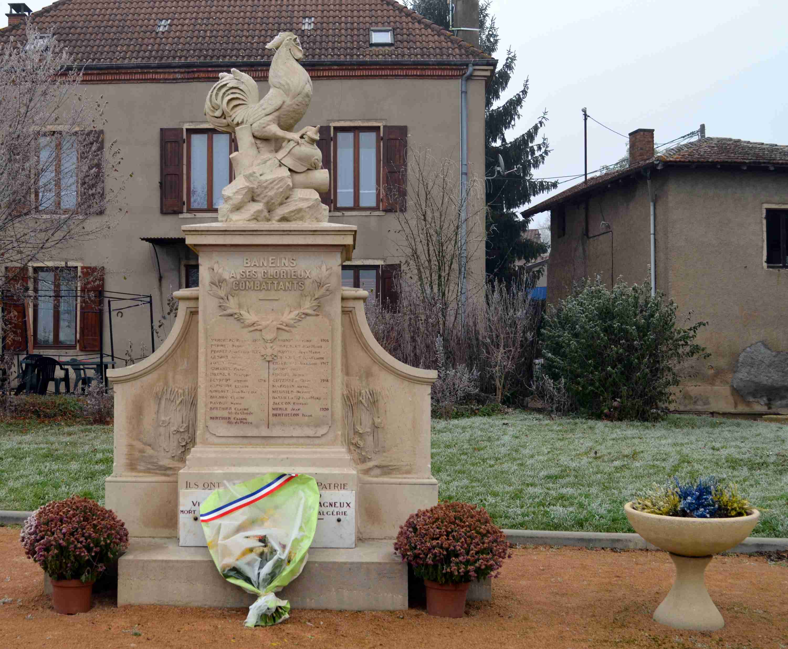 Источник файла — сайт Wikimedia Commons, куда он был загружен под одной из свободных лицензий ( https://commons.wikimedia.org/wiki/File:Monument_aux_morts_de_Baneins.JPG ). Авторов, работавших над этим файлом см. в истории файла: https://commons.wikimedia.org/w/index.php?title=File:Monument_aux_morts_de_Baneins.JPG&action=history