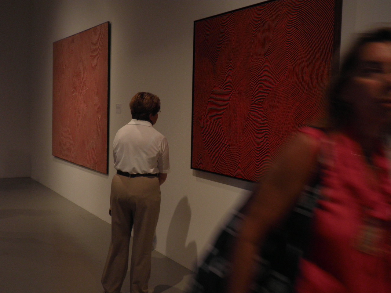 | Описание | Man looking Doreen Reid Nakamarra (1950 in Warburton Ranges, Ngaanyatjarra Lands, Bison Desert, Australia) and Warlimpirrnga Tjapaltjarri (1958 near Kiwirrkurra in Gibson Desert, Australia) paintings inside the Museum Fridericianum in Kassel, Hesse, Germany during dOCUMENTA (13). Doreen Reid Nakamarra and Warlimpirrnga Tjapaltjarri are both members of Papunya Tula Arsists collective. |