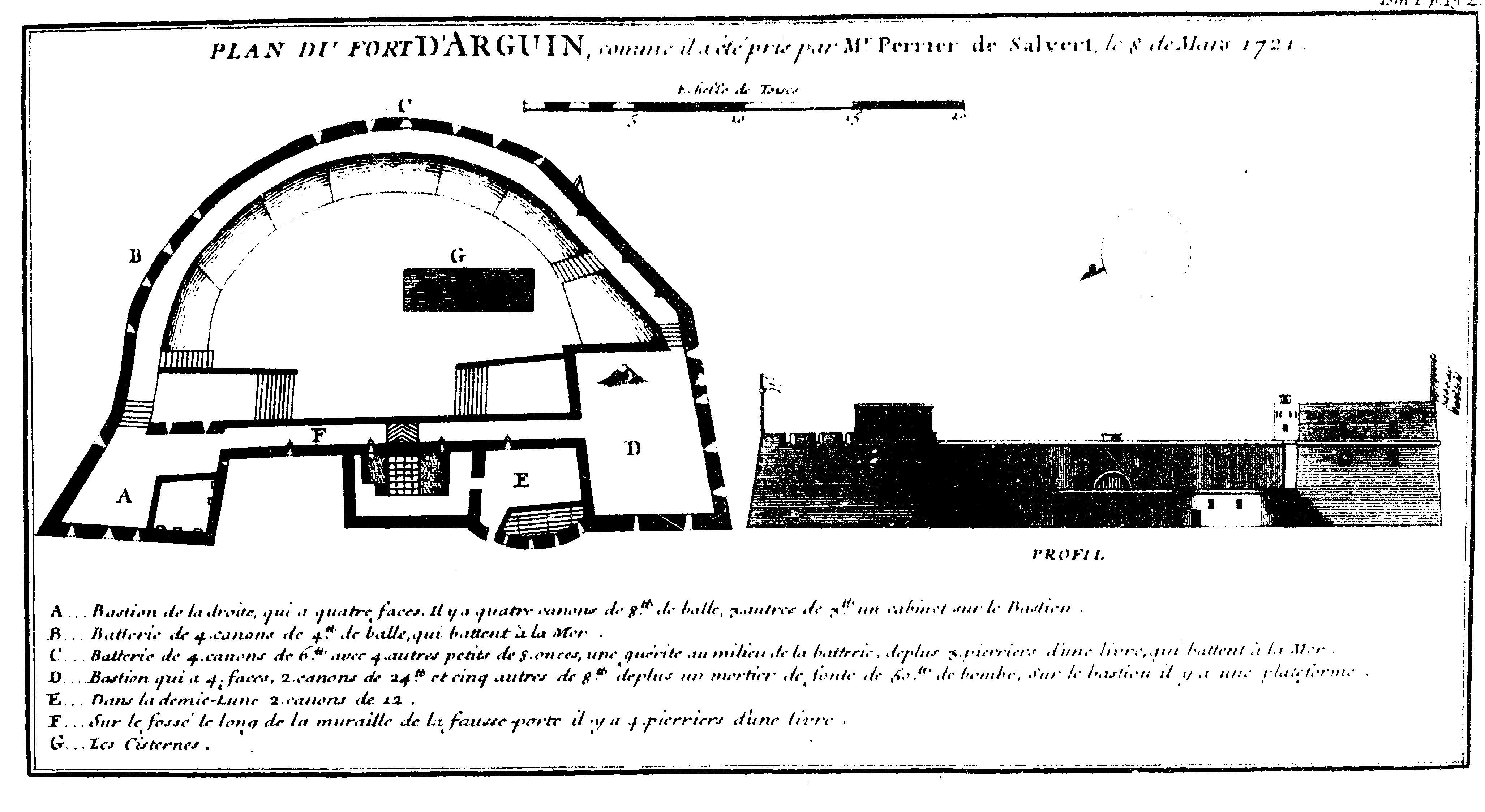Источник файла — сайт Wikimedia Commons, куда он был загружен под одной из свободных лицензий ( https://commons.wikimedia.org/wiki/File:Plan_fo_Arguin_1721.JPG ). Авторов, работавших над этим файлом см. в истории файла: https://commons.wikimedia.org/w/index.php?title=File:Plan_fo_Arguin_1721.JPG&action=history