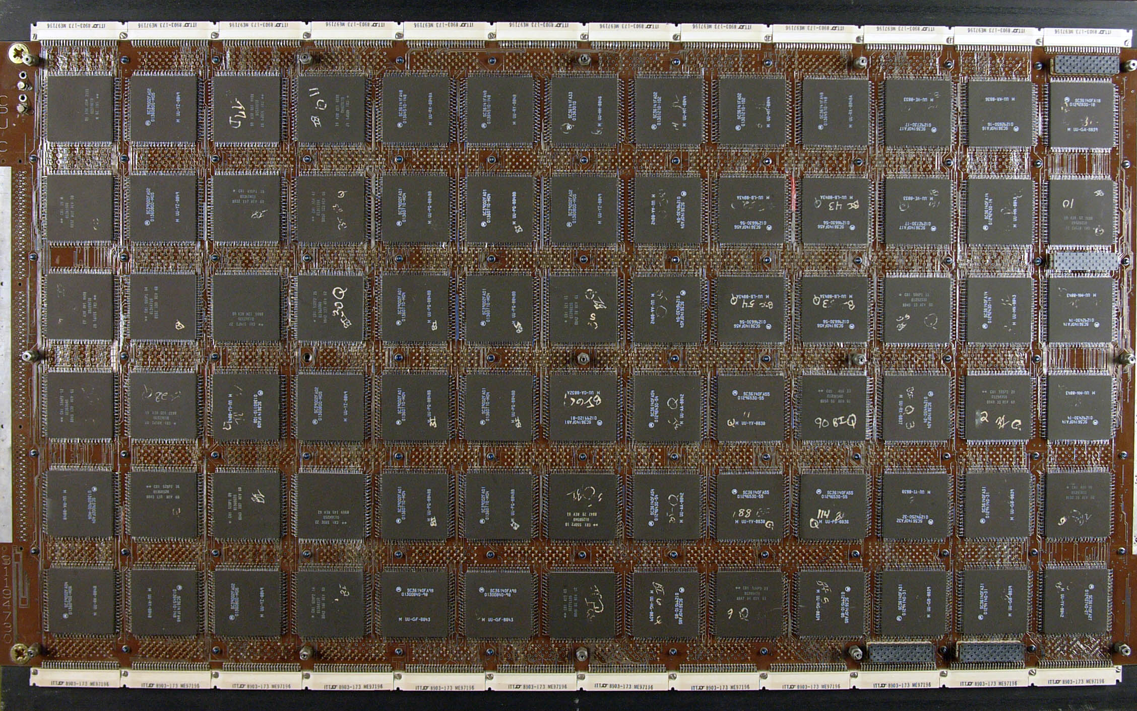 | Описание | Processor board of a CRAY YMP vector computer (operational ca. 1992-2000). The board was liquid cooled and is one vector processor with shared memory (access to one central memory) |