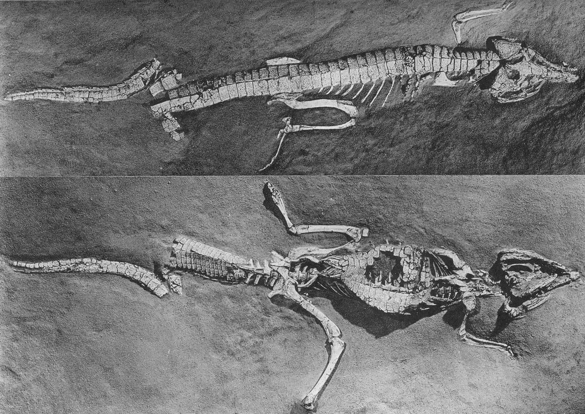 | Описание | Holotype specimen of Protosuchus richardsoni (BROWN, 1934) (AMNH 3024) in dorsal (top) and ventral (bottom) view, Dinosaur Canyon Sandstone member of the Moenave formation, Upper Triassic of the Colorado Plateau, Arizona, USA. |