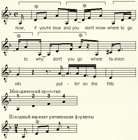 | Описание | Анализ фрагмента песни Puttin' on the Ritz |