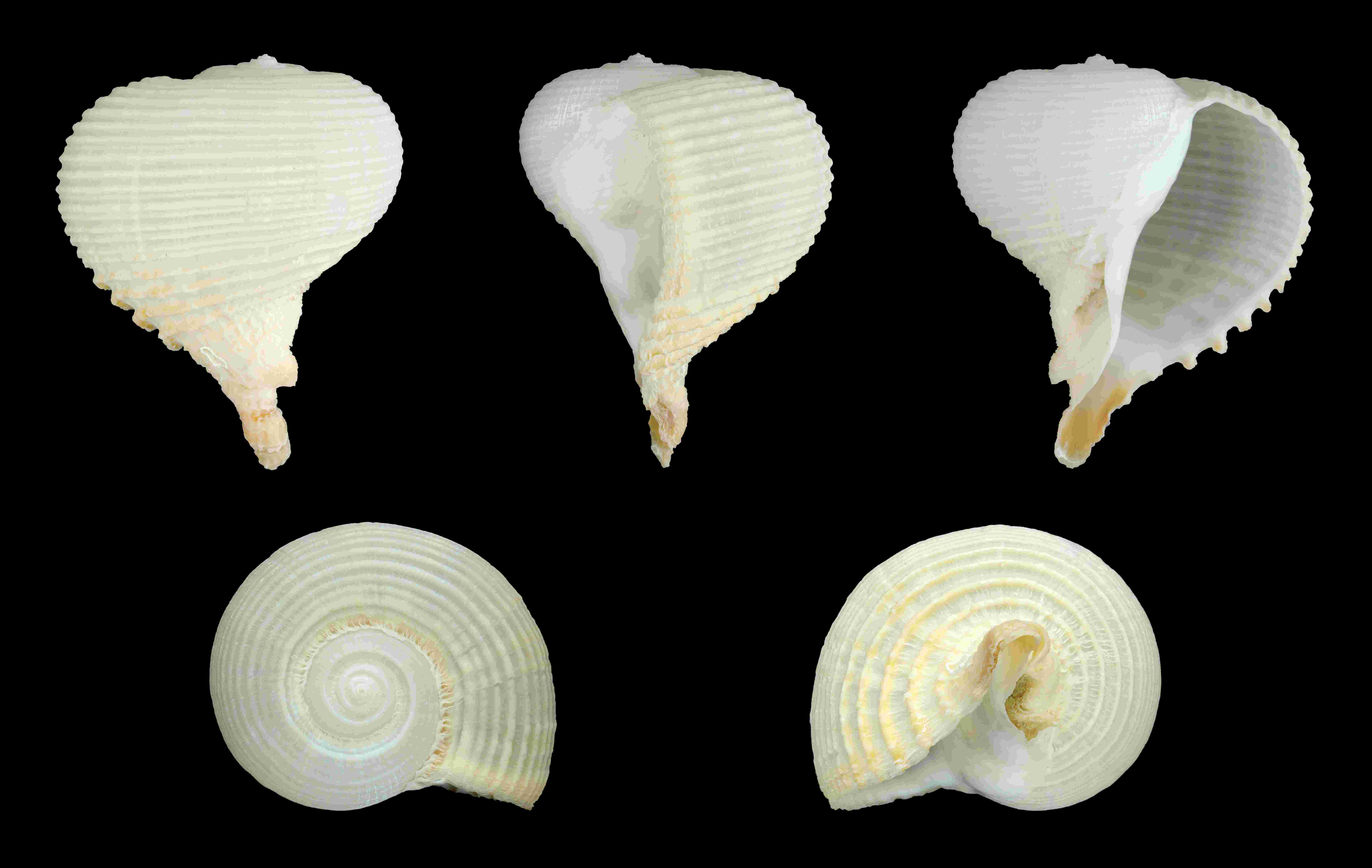 | Описание | Bubble Turnip; Length 5.8 cm; Originating from the Philippines; Shell of own collection, therefore not geocoded. Dorsal, lateral (right side), ventral, back, and front view. |