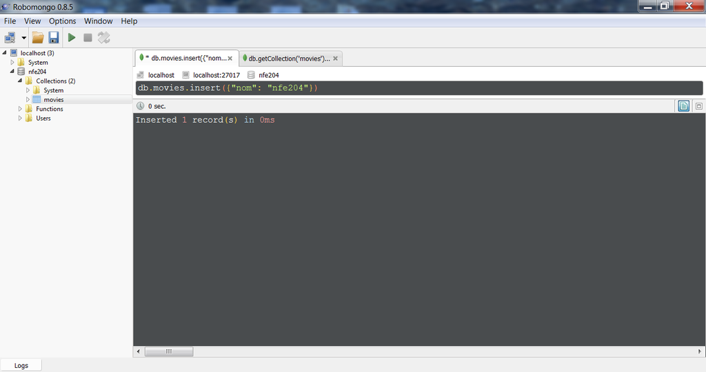 | Описание | Запись записи в MongoDB с Robomongo 0.8.5. |