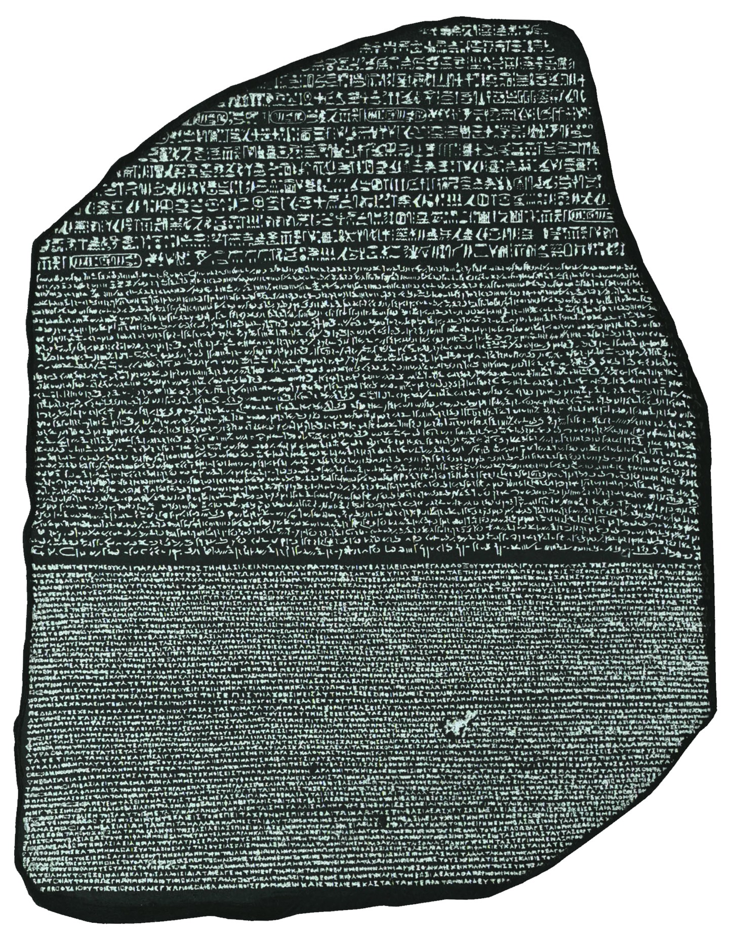 A picture of the Rosetta Stone, in a high contrast, readable format