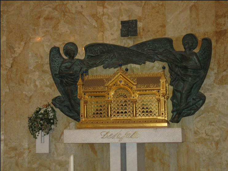 | Описание | S J B S. Urna con las reliquias de San Juan Bautista de La Salle en la casa generalicia de los FSC en Roma. |