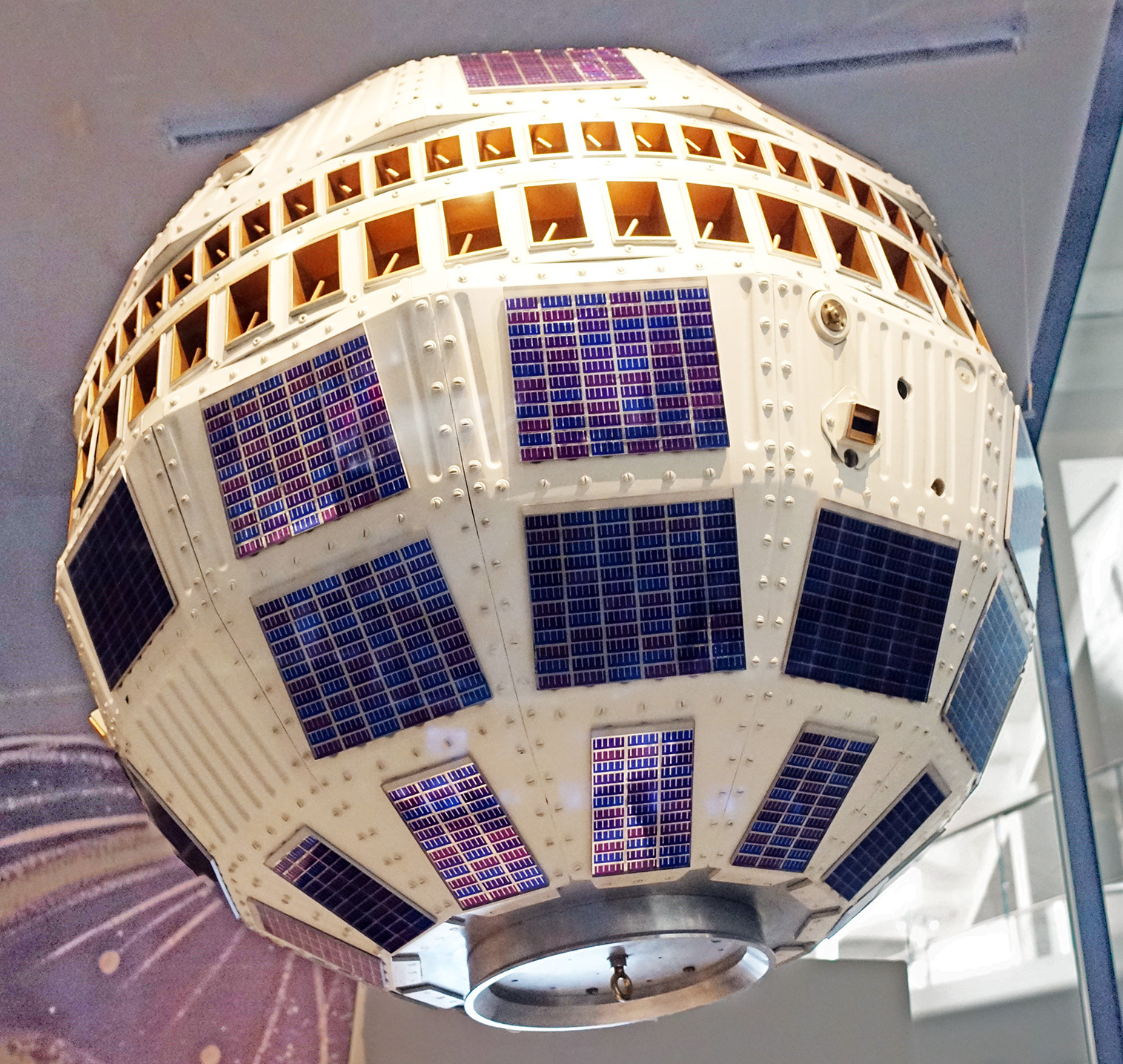 Источник файла — сайт Wikimedia Commons, куда он был загружен под одной из свободных лицензий ( https://commons.wikimedia.org/wiki/File:Telstar_satellite.jpg ). Авторов, работавших над этим файлом см. в истории файла: https://commons.wikimedia.org/w/index.php?title=File:Telstar_satellite.jpg&action=history