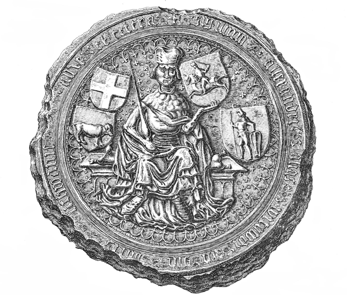 | Описание | Witold duke of Lithuania seal. 1407. + SIGILLUM • ALLXANDRI • ALIAS • WITOWDI • MAGNIS • DUCIS • LITHWANIE • DNI RUSSIE • ET CETERA |